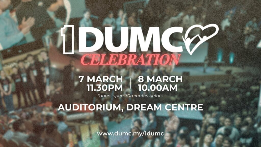 1DUMC Combined Celebration 7 Mar | 11.30pm 8 Mar | 10.00am Auditorium, Dream Centre, PJ More info: dumc.my/1dumc